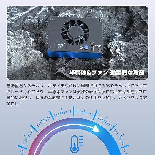 自動温度制御システムがカメラの実際の温度に基づいて対応する冷却効果を調整し、