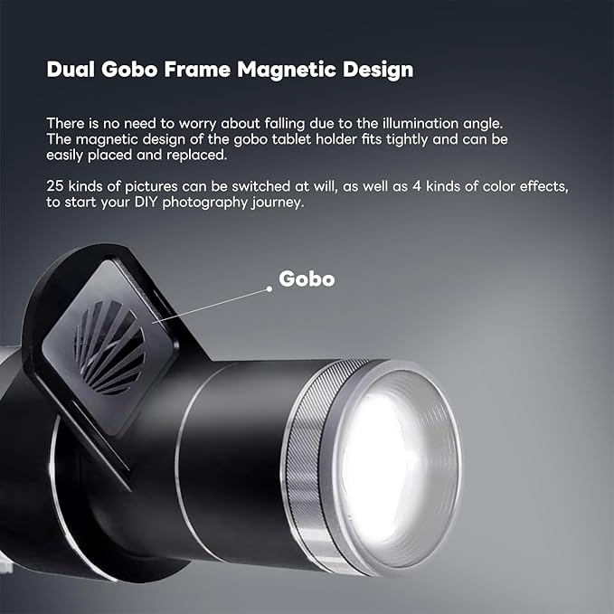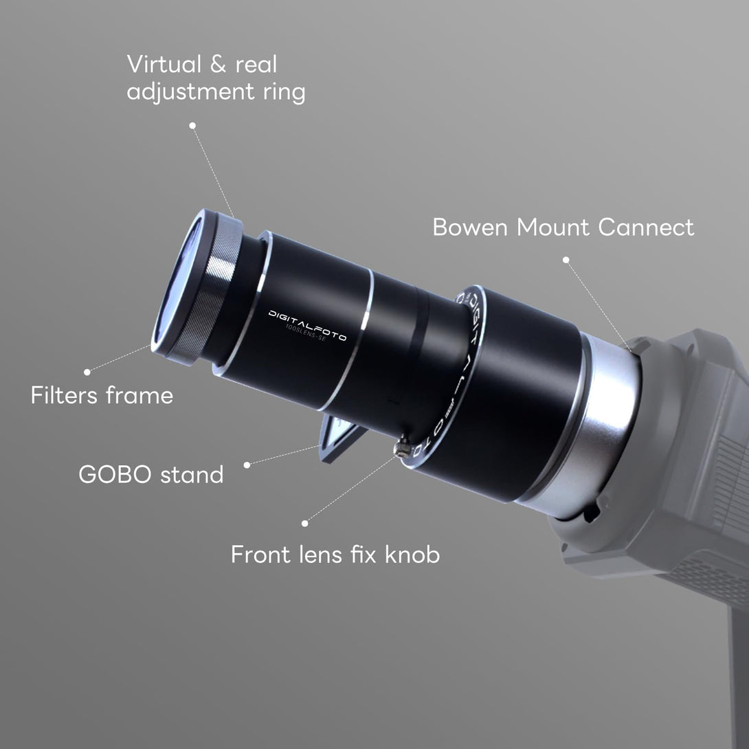 Digitalfoto Bowens マウント光学スヌート、4カラーフィルター、25ゴボ、フィルターフレーム、レンズと投影体 モノライト写真撮影用LEDライトとストロボライト写真機器用(100SLENS-SE)