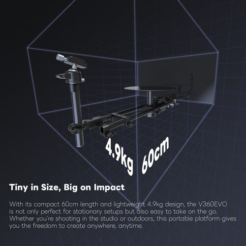 V360EVOは俯瞰撮影も可能となり 従来の正面撮影の他に 高さや角度を変更し 斜めからの見下ろしや俯瞰等 様々なシチュエーションの 撮影方式に対応できます
