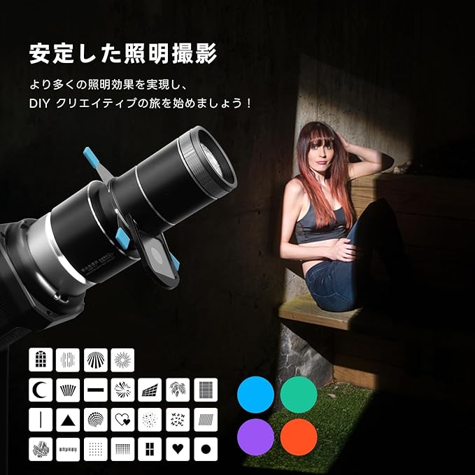 多様な撮影シナリオに合わせてゴボパターンを追加し、 プロ仕様の利便性のために標準の Bowens マウントにアップグレードしました。 標準の Bowens マウントを備えていない