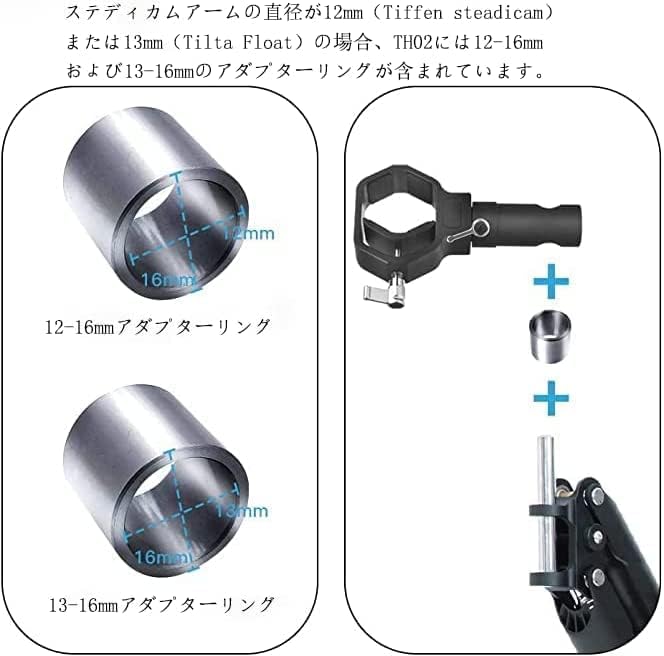 Digitalfoto ハンドジンバル用のステディカムアームおよびベストジンバルアダプター、調整可能な射撃角度、アームピンの直径が12/13/16mmのジンバルベストと互換性があります(TH02)