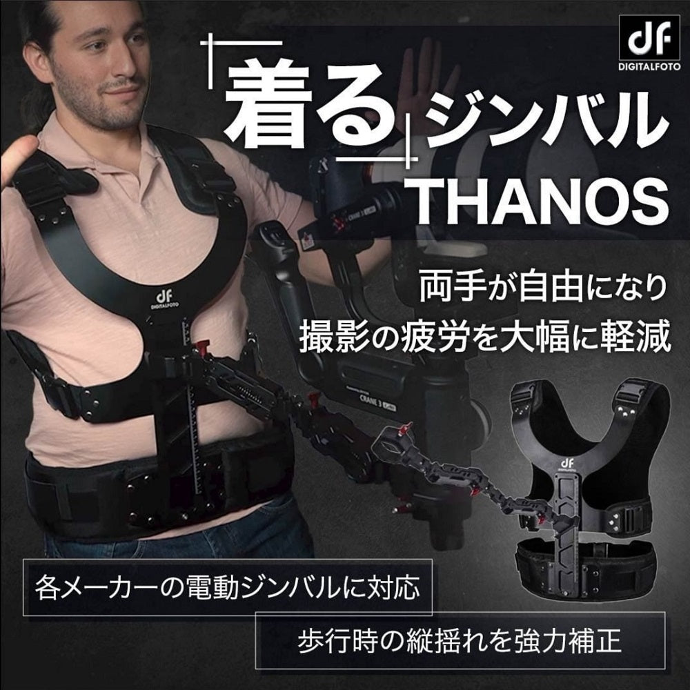 - THANOSは2~5kgまでの搭載重量に対応のスタビライザー撮影用補助ベストです。各機種のスタビライザーに共通使用可能で、付属のラウンドベースプレートを使えばカメラ単体での搭載も可能です。